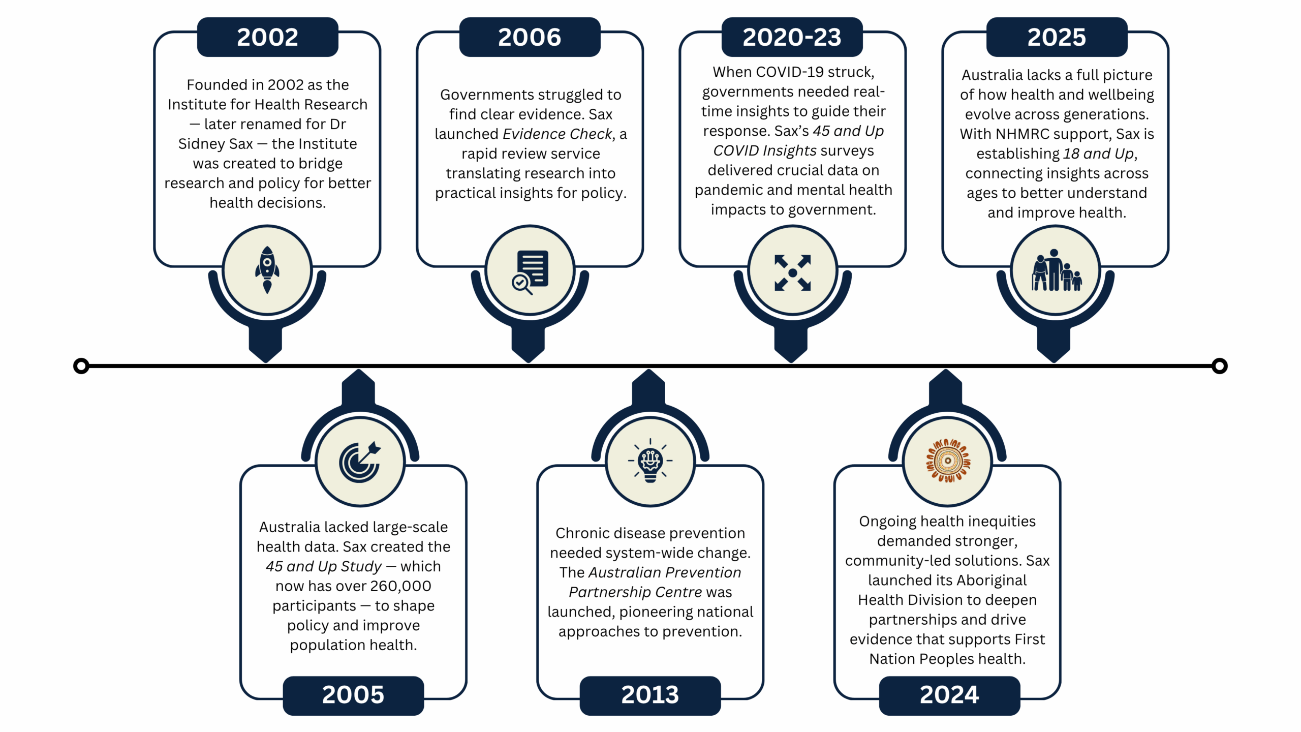 Through collaboration, innovation and community leadership, the Sax Institute brings evidence to life — shaping the systems that determine Australia’s health for generations to come.